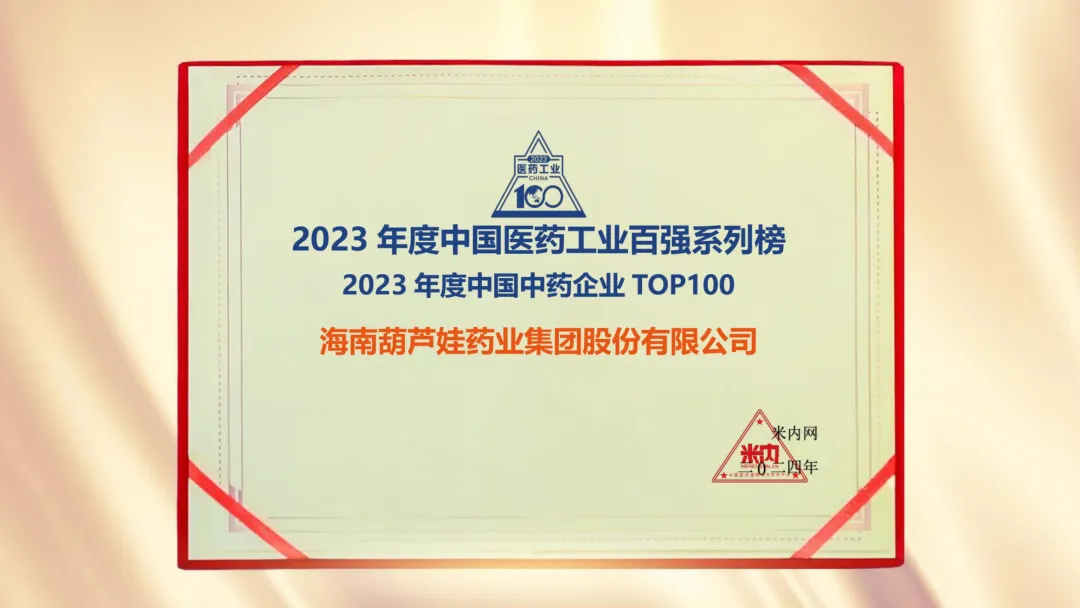 Huluwa Pharmaceutical Group is ranked 40th in the List of 2023 Top 100 Traditional Chinese Medicine Enterprises for its outstanding performance in innovation, product quality and market influence and has climbed up 3 places compared with its position in the previous year.